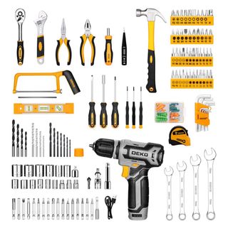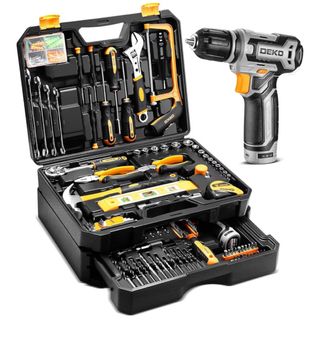 Completa caja de herramientas con una gran variedad de útiles para reparaciones y proyectos. - Incluye taladro inalámbrico DEKO. - Maletín organizador con compartimentos. - Diversas herramientas manuales como llaves, destornilladores y alicates. - Accesorios como brocas y tacos. Negociable