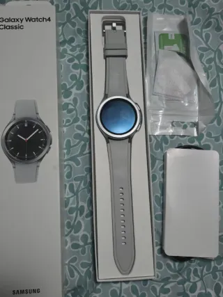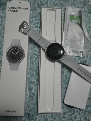 Reloj inteligente Samsung Galaxy Watch 4 Classic LTE en color plateado y negro. - Modelo LTE con conectividad 4G. - Tamaño de 46mm. - Con caja pero sin cargador ¡¡ATENCIÓN LEER BIEN!! - Solo venta en persona y también acepto cambios de mi interés