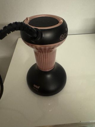 Difusor para rizos Wad Oniq en acabado negro y rosa. Su diseño es elegante y moderno. - Rejilla superior con detalles dorados. - Interruptor de control de velocidad. - Base redonda y estable.