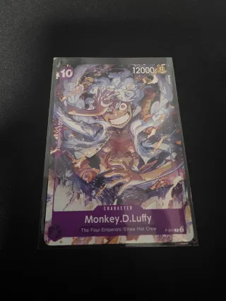Carta promocional de Monkey D. Luffy, número P-041, del juego de cartas One Piece. - Personaje: Monkey D. Luffy - Tipo: Personaje - Coste: 10 - Poder: 12000 - Contra: +1000 - Afiliación: Los Cuatro Emperadores/Tripulación del Sombrero de Paja