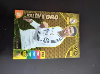 Carta de fútbol coleccionable. - Edición Balón de Oro. - Marca Panini. - Diseño dorado con detalles en negro. - Incluye imagen de jugador.
