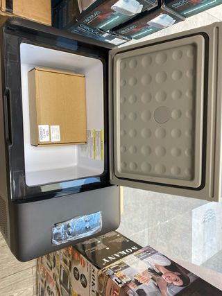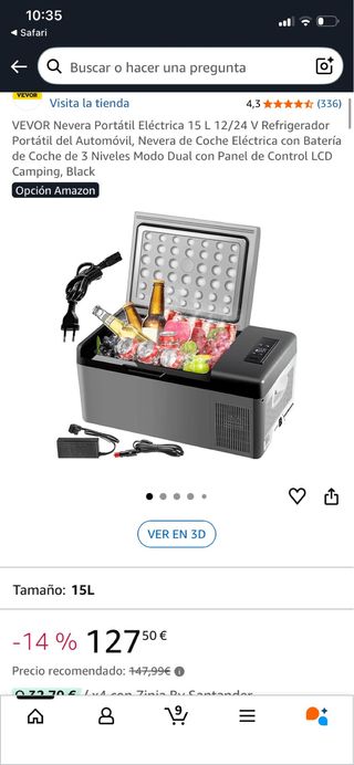 Nevera portátil eléctrica VEVOR de 15 litros, ideal para coche o camping. Funciona a 12/24V y cuenta con panel de control LCD. - Color: Black. - Modo dual. - Batería de coche incluida.
