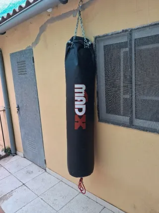Saco de boxeo largo en buen estado, con muy poco uso. - Color negro. - Cierre superior con cadena.
