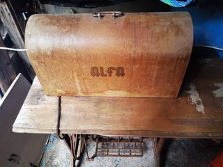 Se vende esta máquina de coser antigua de la marca Alfa. Es un objeto decorativo con un diseño clásico. - Carcasa de madera con asa. - Inscripción de la marca 'Alfa' en la parte frontal. escucho ofertas