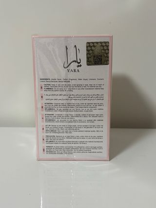 Perfume Yara de Lattafa en presentación rosa. - Eau de Parfum Natural Spray. - Contenido: 100ml / 3.4 fl.oz. - Con su caja original y su envoltorio, sin abrir. - Lo compré por equivocación para un regalo y ya no puedo devolverlo. - Precio algo negociable, abstenerse mareantes, gracias.