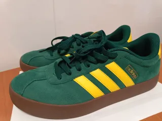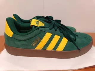 Zapatillas Adidas VL Court 3.0 con un diseño llamativo. - Combinación de colores verde y amarillo. - Detalle de las tres franjas. - Logo de Adidas en la lengüeta y lateral.