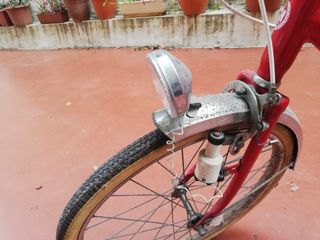 Bicicleta clásica BH de color rojo, con diseño plegable. - Sillín negro. - Guardabarros delantero y trasero. - Portaequipajes trasero.