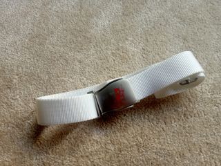 Cinturón blanco con un diseño ajustable y una hebilla metálica plateada. - Hebilla con grabado de diablo rojo. - Material de la correa: nailon. **Sólo realizo envíos certificados por CORREOS. Gracias 😊