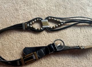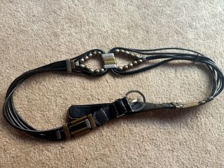 Elegante cinturón de cuero con un diseño bohemio y detalles metálicos. - Cierre con hebilla. - Adornado con cuentas metálicas. - Diseño de múltiples tiras. Adecuado para quien talle una M, 38/40 de pantalón. **Sólo realizo envíos certificados por CORREOS. Gracias 😊