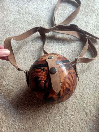Se venden dos bolsitos, uno de imitación cuero y otro artesanal. - El bolso artesanal tiene un diseño esférico con detalles grabados. - El bolso de imitación cuero color marrón es rectangular y tiene un cierre de botón. * Perfectos para llevar lo más preciso en días puntuales. **Sólo realizo envíos certificados por CORREOS. Gracias 😊