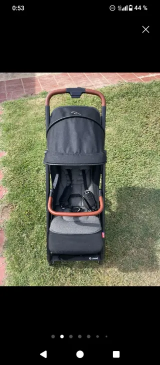 Silla de paseo Jane Rocket Pro en buen estado. Es compacta y fácil de manejar. - Color negro con detalles en marrón. - Capota extensible. - Arnés de seguridad de 5 puntos.