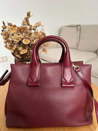 Elegante bolso de piel con un bonito color burdeos. Su diseño estructurado lo hace perfecto para el día a día. - Material: Piel granulada. - Asas superiores. - Correa bandolera ajustable.