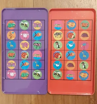 Juego de mesa Bingo Magnético de The Purple Cow, ideal para viajar. Diseñado para niños de 3 a 99 años. - Incluye tablero magnético con imágenes de animales. - Piezas magnéticas para colocar en el tablero. - Rueda giratoria con diferentes imágenes.