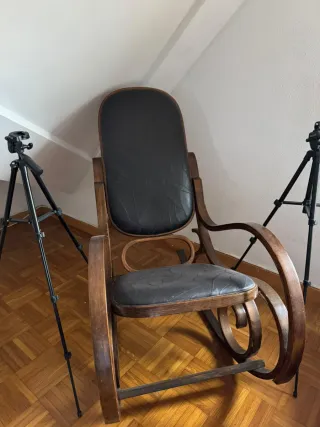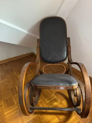Mecedora antigua de piel y madera