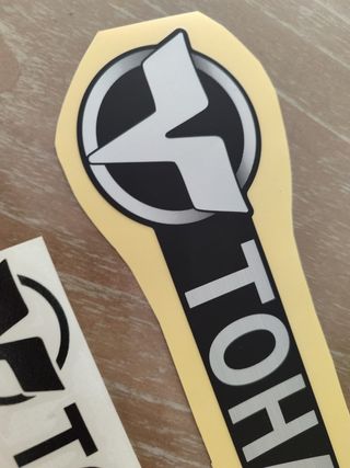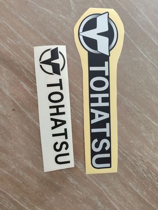 Pegatinas de la marca Tohatsu, ideales para personalizar tu motor fueravorda. Se incluyen dos pegatinas: una rectangular con el nombre de la marca y otra circular con el logo. Son pegatinas nuevas, con un diseño elegante y de buena calidad. Medidas 25*6 cm 18*4 cm aprox Precio por las dos Hago envíos No regateos