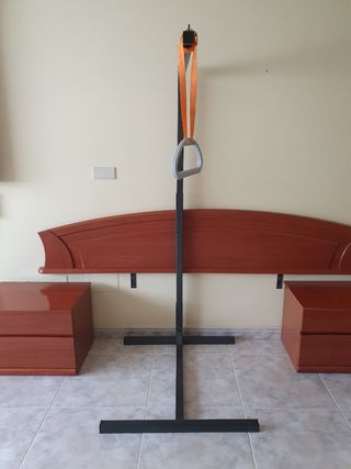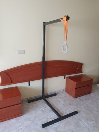 Trapecio de ayuda para levantarse de la cama. Ideal para personas con movilidad reducida. - Estructura metálica. - Asa de sujeción. - Correas de sujeción naranjas.