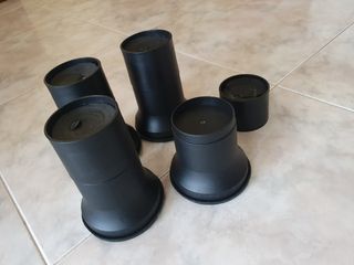 Se venden cuatro patas de elefante negras, ideales para muebles o equipos de sonido. - Color negro. - Material resistente. - Diseño cónico. - Se puden poner en dos medidas: en 16,5cm y 11,5cm.