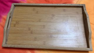 Práctica bandeja de madera con un diseño natural y asas integradas para facilitar su transporte. Ideal para servir o como superficie de apoyo. - Fabricada en bambú y madera. - Color beige y marrón.