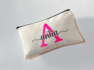 Neceser de tela con cremallera Nombre y diseño personalizable.