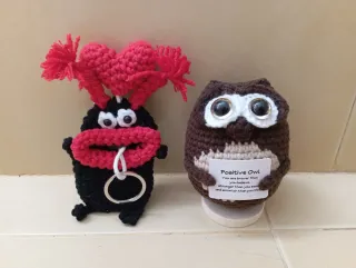 LEER DESCRIPCIÓN COMPLETA 👇 ❗SÓLO 3'75€ UNIDAD!❗ Conjunto de 4 adorables figuras de crochet (ganchillo) con mensajes positivos de apoyo, perfectas para decorar. Incluye: - un llavero/monedero "monstruo negro" - un búho - una paloma rosa - un dinosaurio verde Las medidas de todos son aprox. entre 7 y 10 cm. Ver fotos ampliando imágenes del anuncio. ‼️ PRECIO NO NEGOCIABLE.