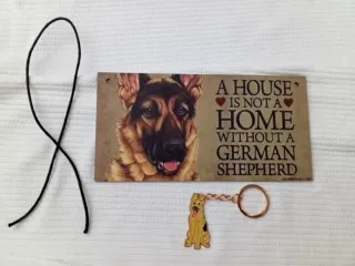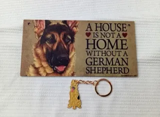 Pastor Alemán Lote: Figura, Llavero, Cartel madera