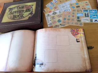 Álbum de fotos con un diseño vintage, perfecto para guardar tus recuerdos. - Incluye pegatinas temáticas de viajes. - Páginas forradas para escribir y pegar fotos. - Cierre de seguridad. Ideal para regalar o uso personal Es nuevo, se ha sacado para hacer las fotos.