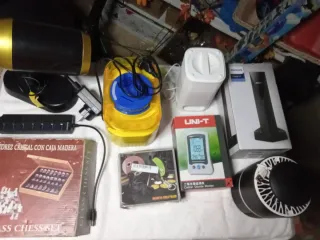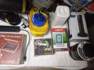 Se vende lote variado de artículos. - Cargador de pared. - Hub USB. - Monitor de CO2. - Altavoz Philips. - Juego de ajedrez. - Cable magnético.