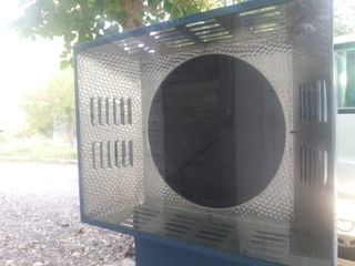 Acuario de cristal con un soporte metálico bastante degastado - Acuario de cristal. - Soporte metálico negro. - Separadores interiores.