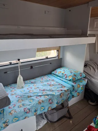 -2 ambientes -No tiene humedades -Baño potty -Estabilizador alko -Nevera trivalente -Cocina gas -Colchon 120 nuevo y literas de 80 convertilble en armario -Oscurecedores y mosquiteras en todas las ventanas -Todas las ventanas en buen estados menos una que tiene una grieta por intento de robo pero abre y cierra perfectamente -Avance invierno nuevo(solo usado una temporada) -Amplio espacio de almacenaje -aire acondicionado,pingüino