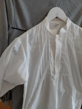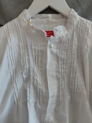 Camisa blanca de fallero para niño, con detalles de puntilla y plisados. - Cuello mao. - Cierre de botones. - Adornos de puntilla en cuello y delanteros.