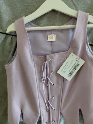 Justillo para niña en color morado, talla 8. - Diseño con cordones frontales. - Tejido de tapicería.