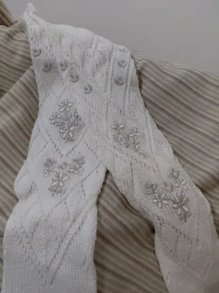 Calcetines blancos con un delicado bordado plateado. - Diseño con rombos y detalles florales. - Talla 28-30.
