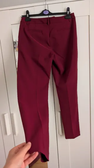 Pantalones de vestir de color burdeos. Diseño elegante y moderno. - Cintura con trabillas. - Bolsillos laterales.