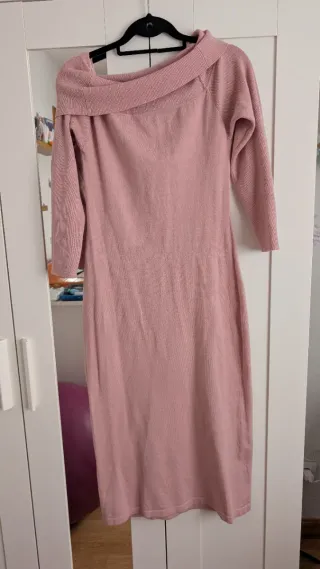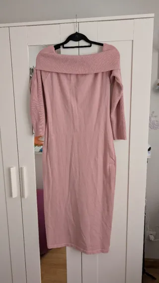 Vestido de punto en color rosa, con escote Bardot. - Manga larga. - Tejido elástico. - Largo midi.
