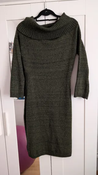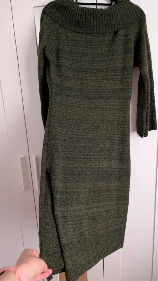 Vestido de punto de manga larga en color verde. Tiene un cuello amplio y un diseño ajustado. - Tejido de punto. - Manga larga. - Cuello amplio.