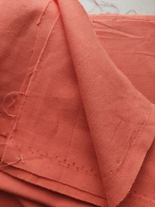 Retal de tela fina,blanda, sintética de color naranja con un acabado liso y suave. La medida es 3.00x2.70. El precio es por el retal entero. Hago lotes para hacerte ahorrar en los gastos de envío. Puede elegir lo que gusta y enviaré en un paquete.