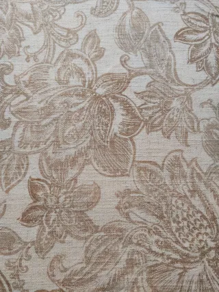 Retal de tela fina, fuerte, blanco, sintética con un delicado estampado floral en tonos rosas y marrones sobre fondo crudo. La medida es 1.40m de ancho y 2.70m de largo. El precio es por el retal entero. Hago lotes para hacerte ahorrar en los gastos de envío. Puede elegir lo que gusta y enviaré en un paquete.