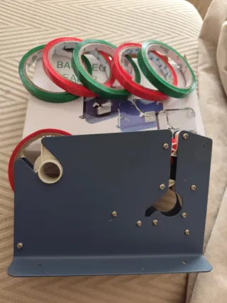 Máquina para cerrar bolsas de plástico o celofán. Ideal para negocios o uso doméstico. - Color azul. - Incluye cinta roja y verde.