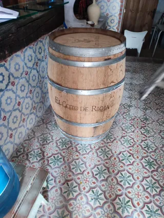 Barril de madera de bodega, ideal para decoración o coleccionismo. - Material: Madera. - Aros metálicos.