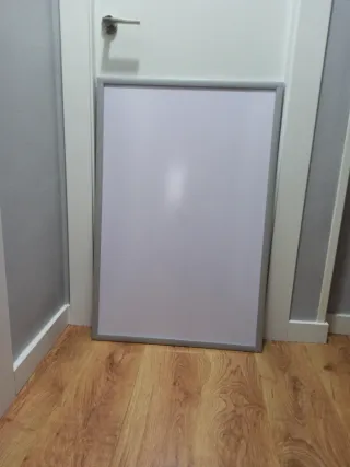 Pizarra blanca con marco de madera gris, ideal para collage para fotos. Tiene en el marco unos agujeritos. - Medidas 90x60 - Marco de madera resistente.