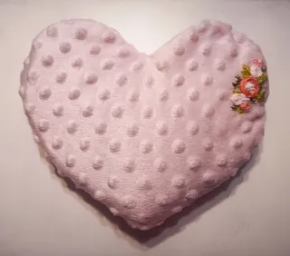 Precioso saco térmico con forma de corazón y funda suave hecho a mano. Ideal para regalar en San Valentín o cualquier ocasión especial a esa persona que tanto quieres. Hecho con garbanzos para preservar mejor el calor y lavanda para relajar. - Realizado en algodón el saco tèrmico y en tela Minky rosa bebe la funda del mismo. - Diseño de corazón. - Bordado floral decorativo. Se puede hacer en otros colores o combinaciones.