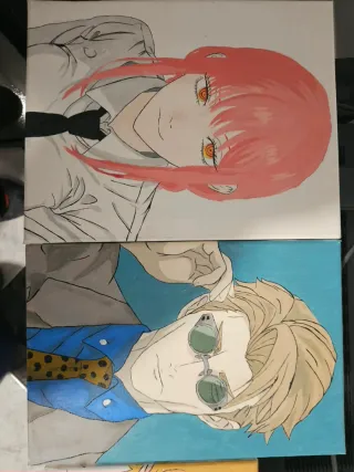 Conjunto de 3 láminas decorativas del anime Chainsaw Man. - Ilustraciones de Denji y Power. - Estilo anime. - Ideales para coleccionistas.