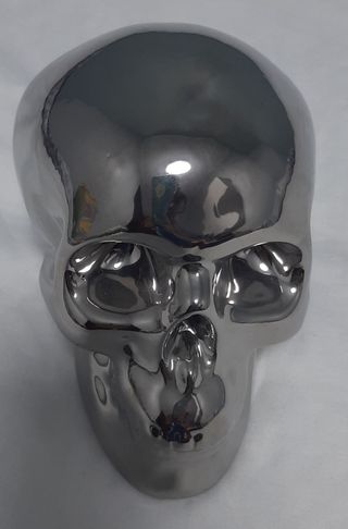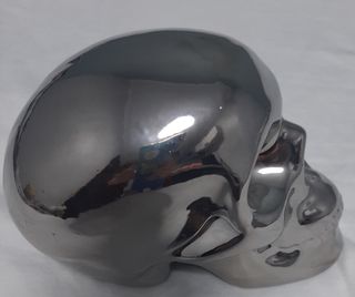 Hucha de color plata, en forma de craneo, nunca se ha usada. No hago envios.