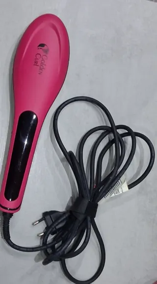 Cepillo térmico alisador de la marca Golden Curl en color rosa. - Mango ergonómico con detalles en negro. - Cable de alimentación negro.