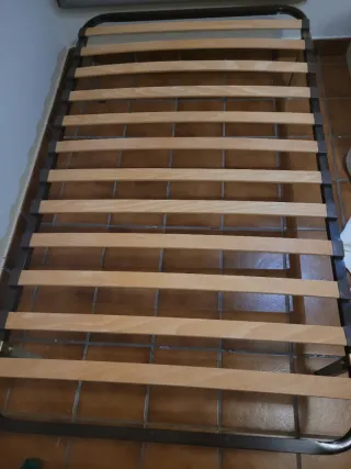 Somier de lamas de madera con estructura metálica. - Base de descanso para colchón. - Lamas de madera. - Marco metálico resistente. Opción de colchón gratis. Medidas para cama de 105x180