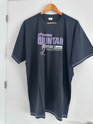 Conjunto de pijama corto de algodón. - Camiseta negra con estampado. - Pantalón corto morado.