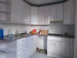 GRATIS Conjunto de puertas y frentes de armarios o muebles de cocina. - Diseño clásico en color blanco. - Tiradores dorados. - Ideal para renovar o completar mobiliario.