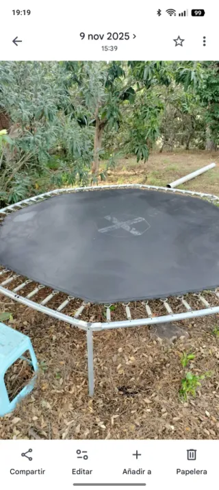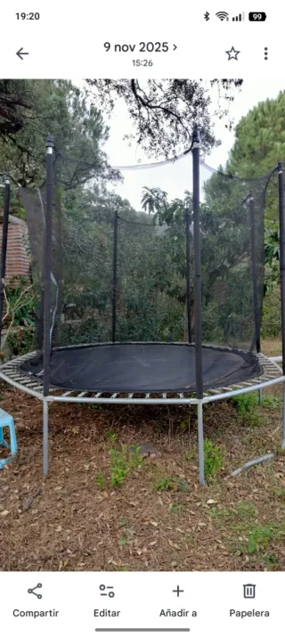 Cama elástica de 3x3 metros, ideal para diversión al aire libre. Se encuentra en buenas condiciones. - Estructura metálica. - Red de seguridad. - Base de salto resistente.
