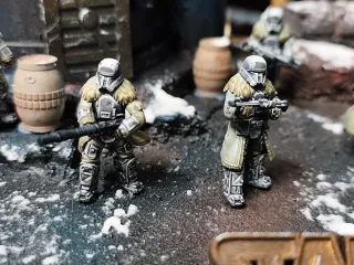 7 figuras range troopers legión pintadas profesional, exposición,nunca jugado,el diorama también se incluye en el precio, diorama, escenografía, maqueta, x-wing