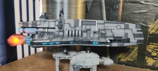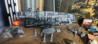 Nave star wars crucero gozanti imperial con dos AT-AT pintado a nivel muy alto,nunca jugado,solo exposición, nave muy grande,no leer: escenografía, diorama, maqueta,legión, transporte.